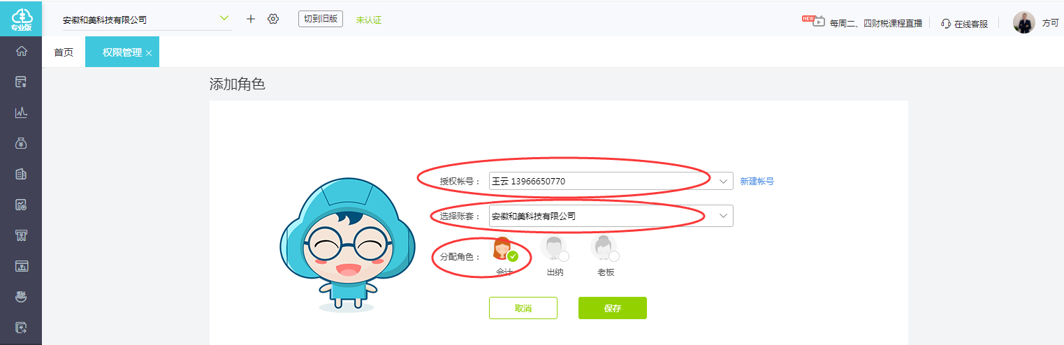 注:1、好會計專業(yè)版及以上版本才可以增加兩個及以上會計角色的用戶。